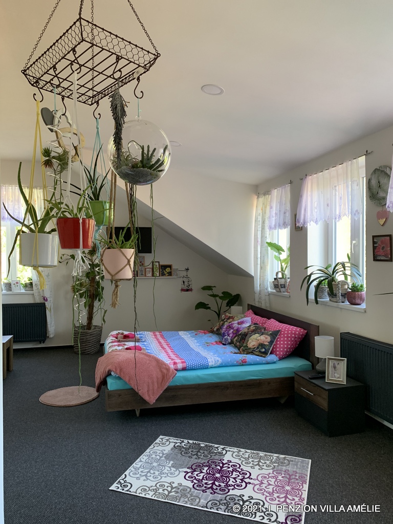 Útulný plně vybavený pokoj v boho stylu s wifi připojením a soukromým balkónem. V pokoji je k dispozici minibar, rychlovarná konvice s pestrou nabídkou čajů a kávy, televizor, fén, sprchový kout, bačkory a řada kosmetických vzorků. Snídaně dle vašeho výběru se podává přímo na pokoji nebo lze využít prostory recepce.