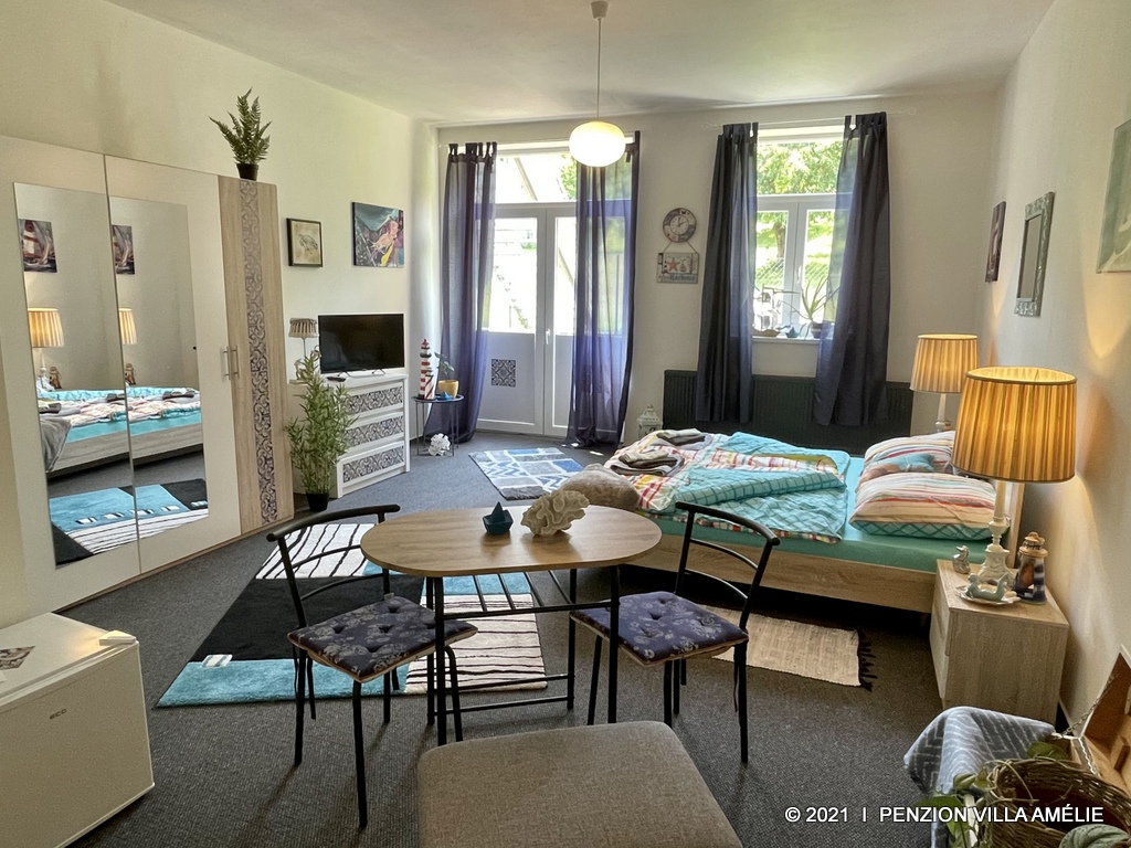 Prostorný plně vybavený pokoj v námořnickém stylu s wifi připojením a samostatným vstupem na zahradu. V pokoji je k dispozici minibar, rychlovarná konvice s pestrou nabídkou čajů a kávy, televizor, sprchový kout, fén, bačkory a řada kosmetických vzorků. Snídaně dle vašeho výběru se podává přímo na pokoji nebo lze využít prostory recepce.