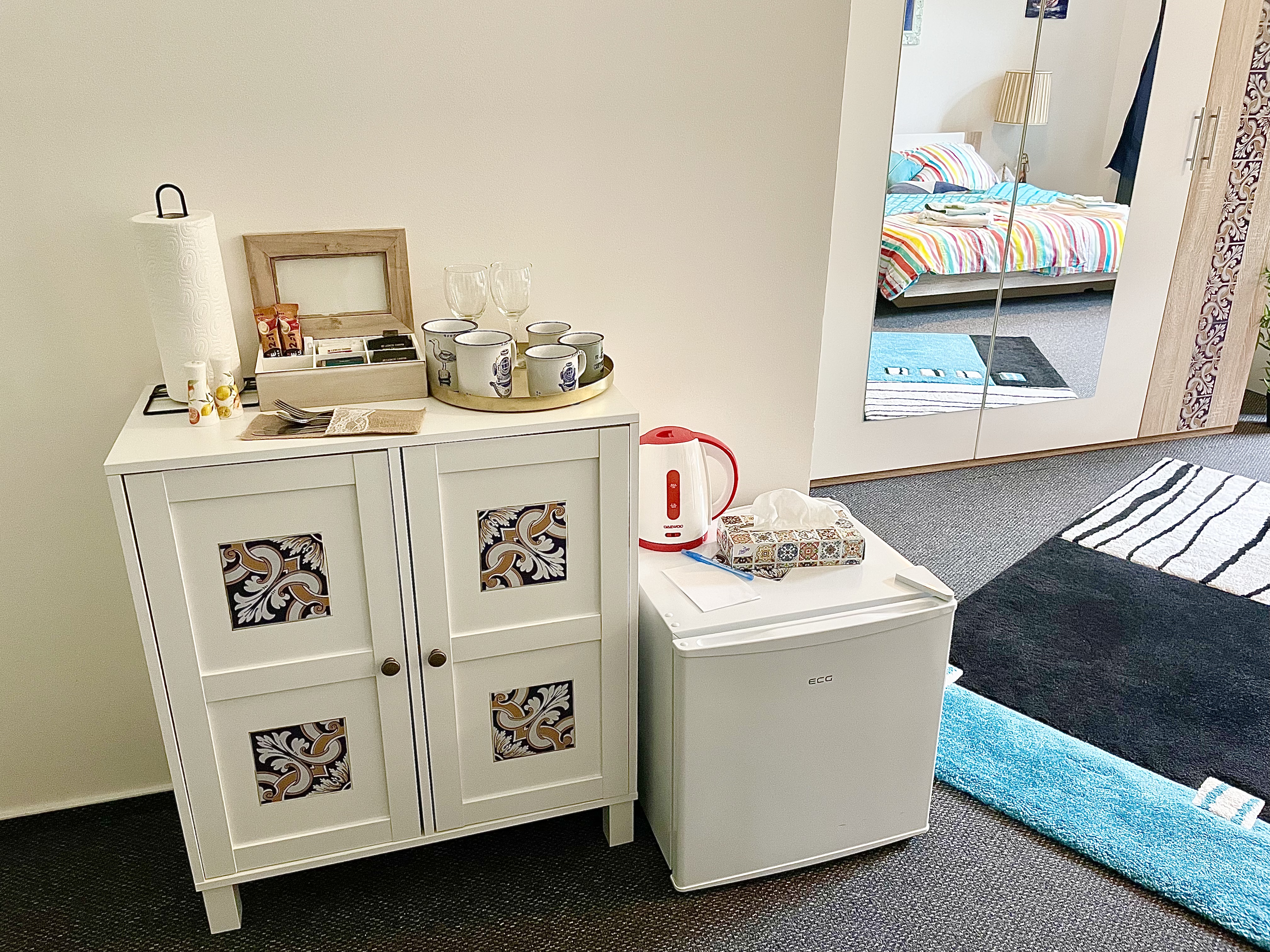 Hravý plně vybavený pokoj s wifi připojením a samostatným vstupem na zahradu. V pokoji je k dispozici minibar, rychlovarná konvice s pestrou nabídkou čajů a kávy, televizor, sprchový kout, fén, bačkory a řada kosmetických vzorků. Snídaně dle vašeho výběru se podává přímo na pokoji nebo lze využít prostory recepce.